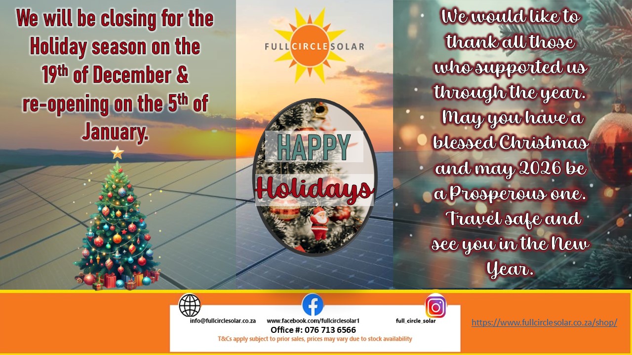 Full Circle Solar supplies the best solar inverters & systems in South Africa & Southern Africa for individuals and businesses. We offer the most reliable brands and expert system designs than you can find anywhere else. That is why you can trust us to deliver the perfect solar inverter installation to suit your needs and pocket, Install today and start saving money and even put money back in your pocket with an Inverter solar battery system supplied by Full Circle Solar.